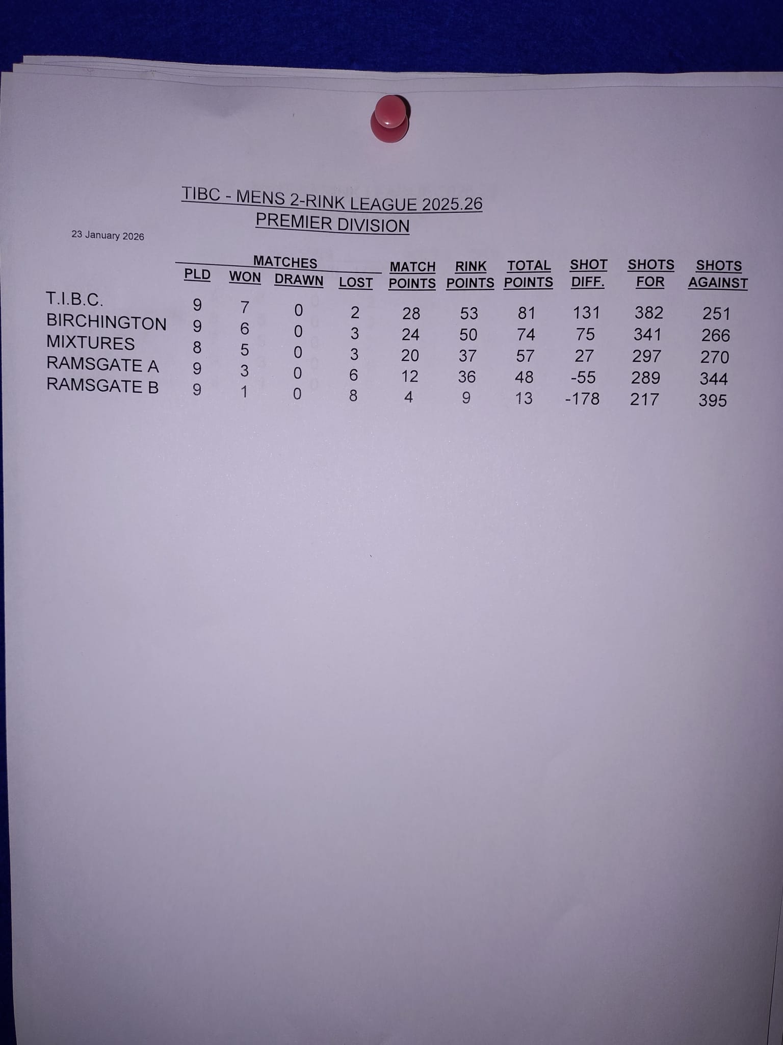 TIBC have entered teams in the Mens and Mixed Leagues for 2025, hoping to improve on our 2024 ‘Runners Up’ position in the Mens League, and retain our ‘League Winner’ position in the Mixed League.  Please support your club by putting your name down for matches, details of which are on the Match Notice Board between the Office and Quiet Room.  All support is appreciated and please do not be disheartened if you are not chose for a particular game.