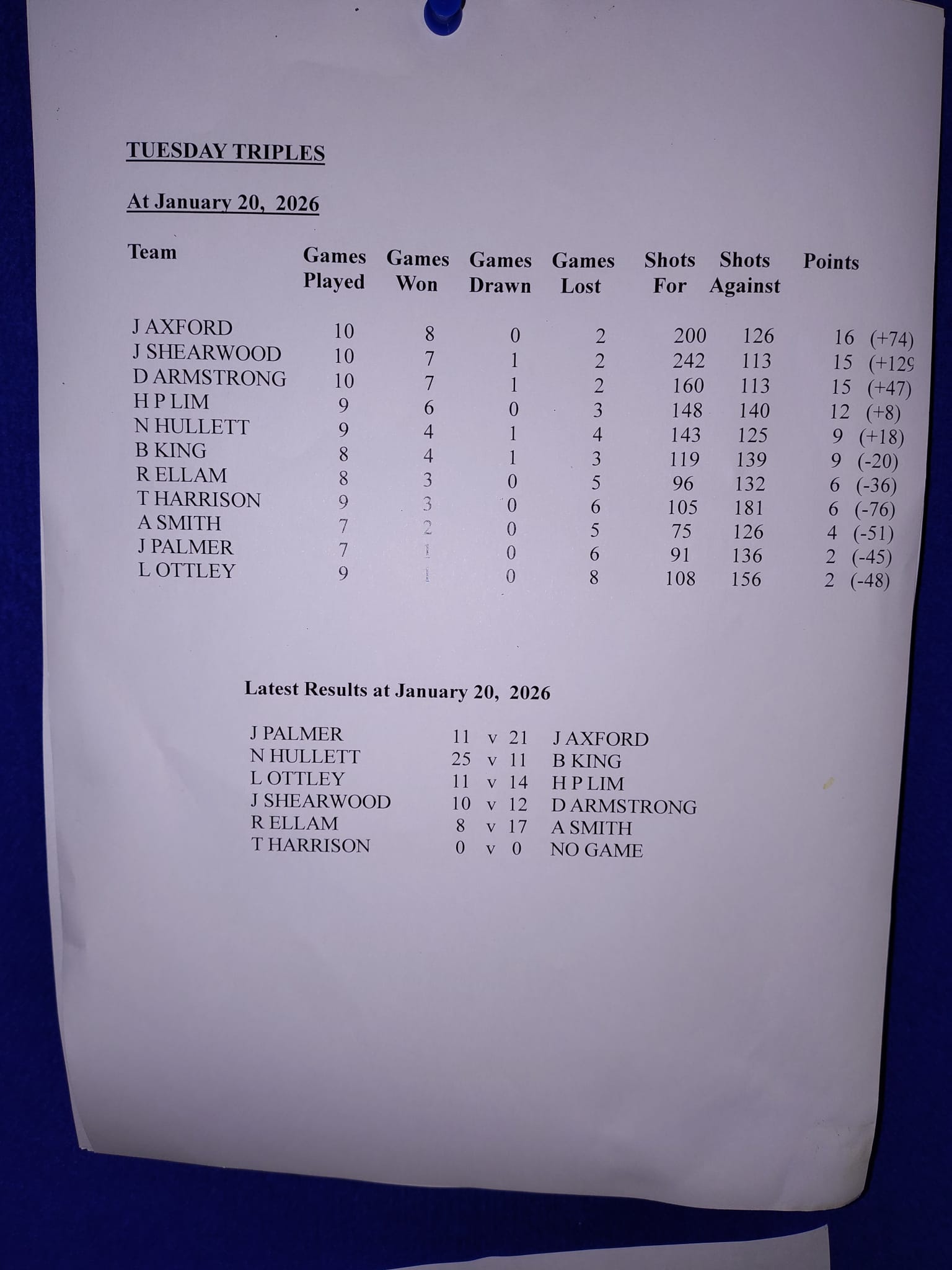 26/10 v Prince Arthur – WIN!  96 – 79.  4 rinks won, 1 drawn, 1 loss.  13pts. 🥳